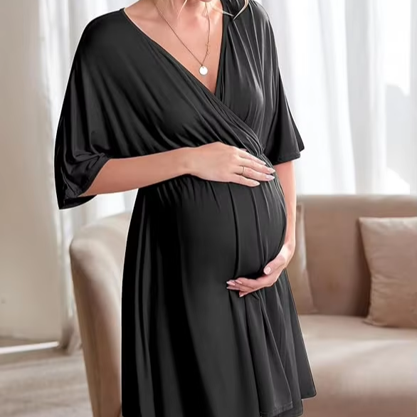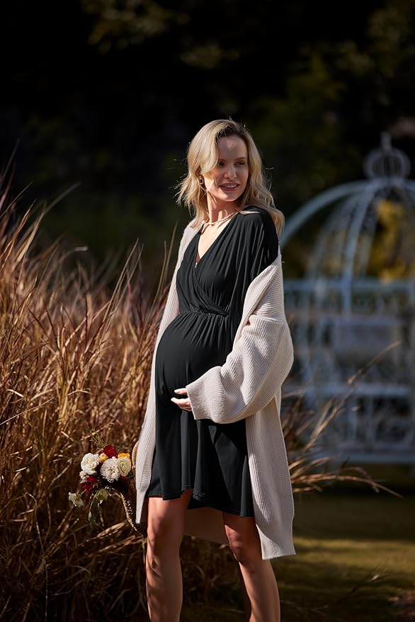 Robe de maternité 3 en 1 Tenue de travail/accouchement/hôpital Chemise de nuit d'allaitement Tenue de nuit pour l'allaitement Robes antimicrobiennes en bambou