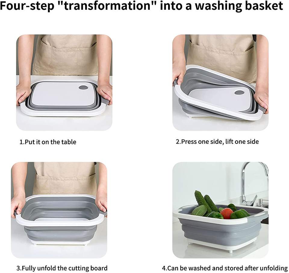 Planche à Découper Pliable 3 en 1 en Plastique PP avec Bassine à Légumes Rétractable pour le Camping