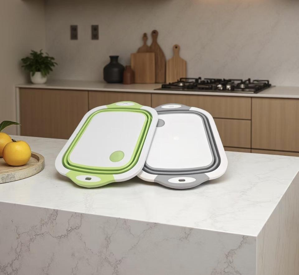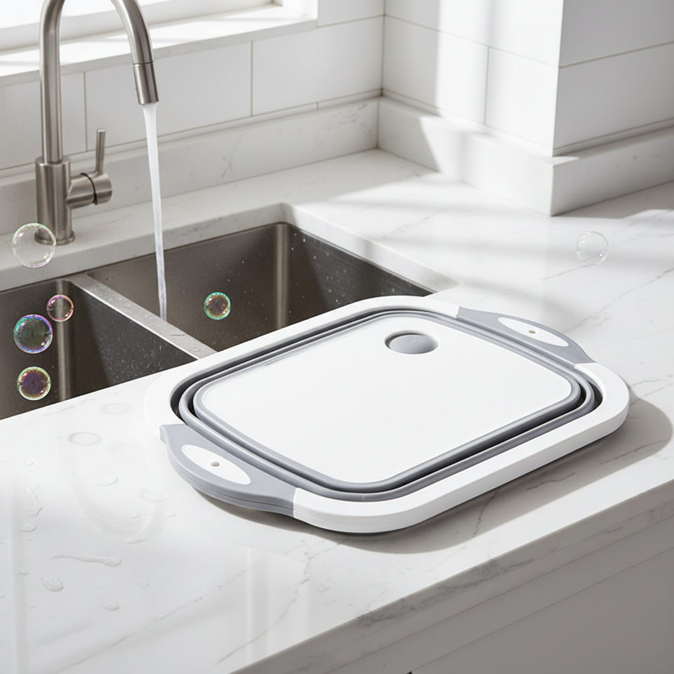 Planche à Découper Pliable 3-en-1 Multifonctionnelle en Bambou et Bois pour Évier ou Utilisation Alimentaire