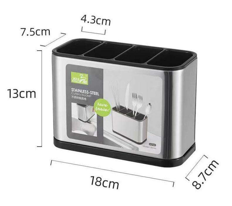 Conteneur de rangement pour ustensiles de cuisine multifonctionnel 3 en 1 en acier inoxydable avec bac d'égouttement intégré, porte-baguettes et porte-cuillères