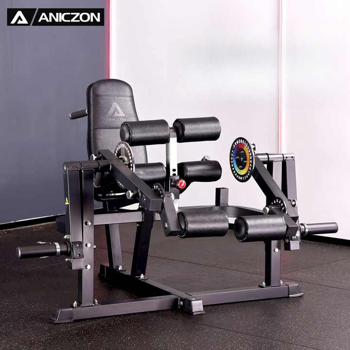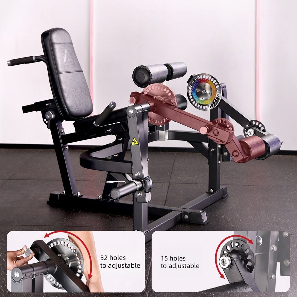 Machine 3-en-1 à charge par disques pour soulevé de cuisse et extension de jambe, équipement de gym en acier réglable pour entraînement des jambes et des fessiers, utilisable assis ou allongé