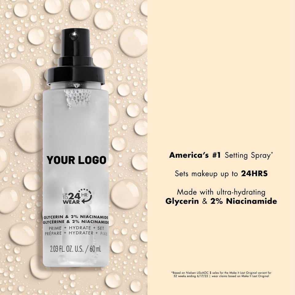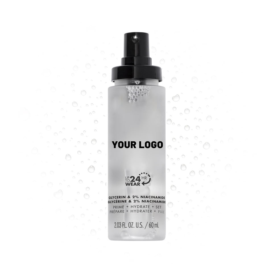 Spray fixateur de maquillage hydratant 3 en 1 60 ml avec glycérine et 2% de niacinamide, résistant au transfert, pour marque privée