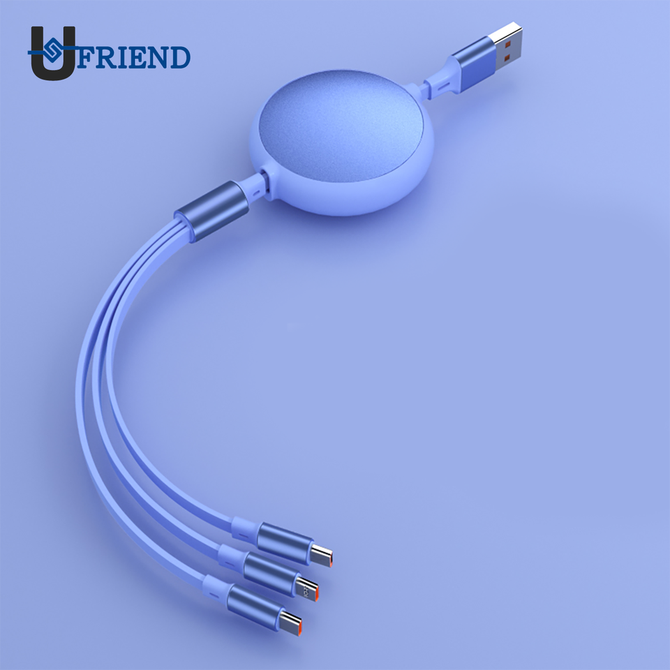 Câble de charge USB extensible 3-en-1, cordon de charge rapide 3A pour iPhone Android Type-C, utilisation en voiture et au quotidien