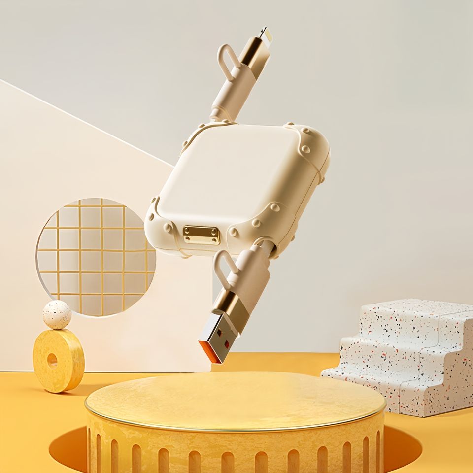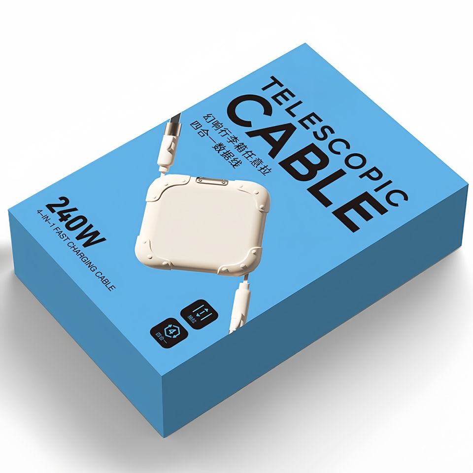 Câble de charge rapide télescopique 3 en 1, 1 m, réutilisable, blindé, multifonction, en PVC tressé, pour ordinateur, caméra, mobile
