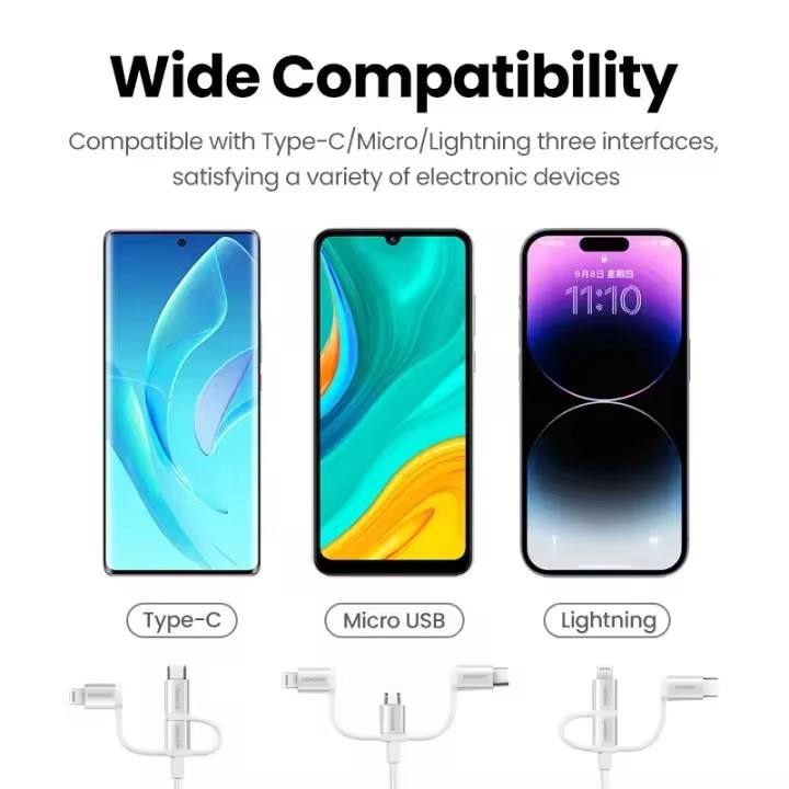 Nom du produit:Câble de données USB2.0 vers Micro USB + Type-C + Lightning