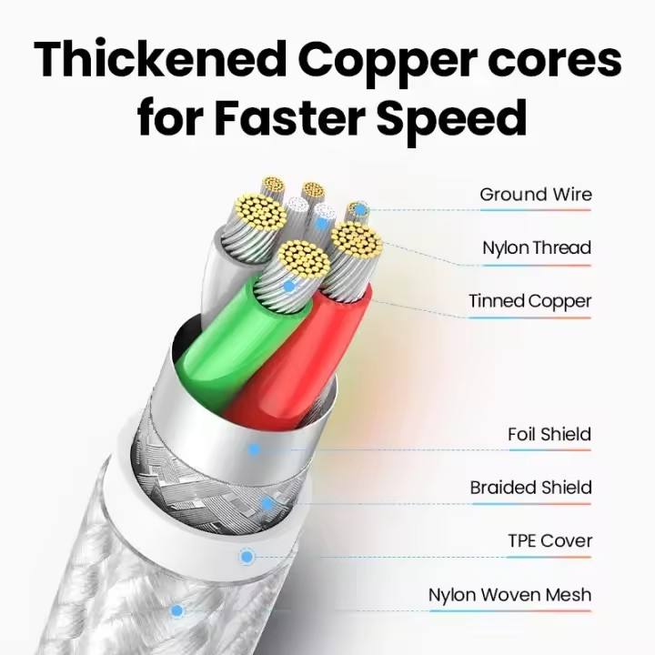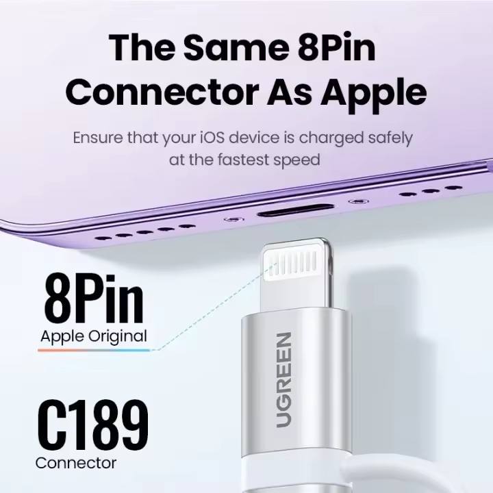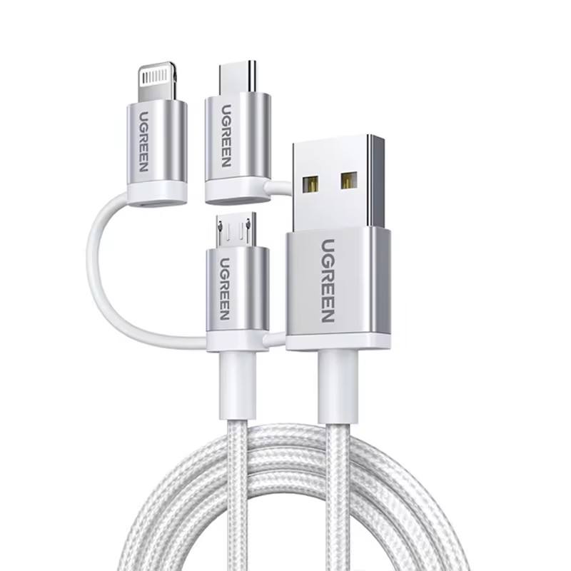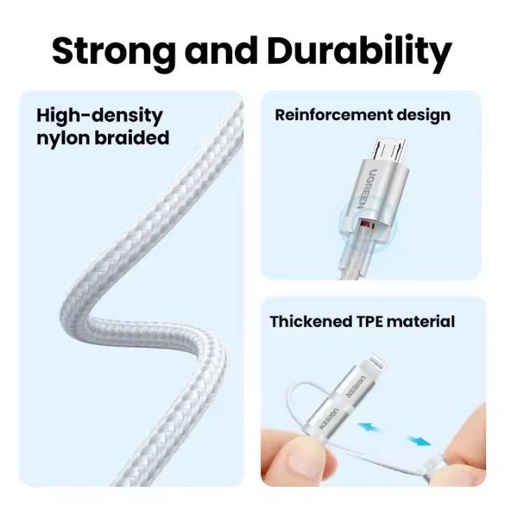 Câble USB de charge rapide UGREEN 3-en-1 avec connecteurs Type-C, Micro USB et Lightning, certifié MFi, en nylon tressé pour iPhone 17, 16, 15, 14 Pro Max