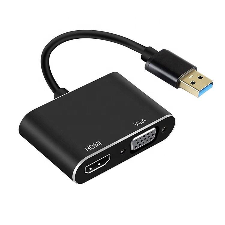 Convertisseur audio-vidéo 3 en 1 USB 3.0 vers HDMI VGA, répartiteur 1080P, 4K, écran double pour projecteur d'ordinateur portable