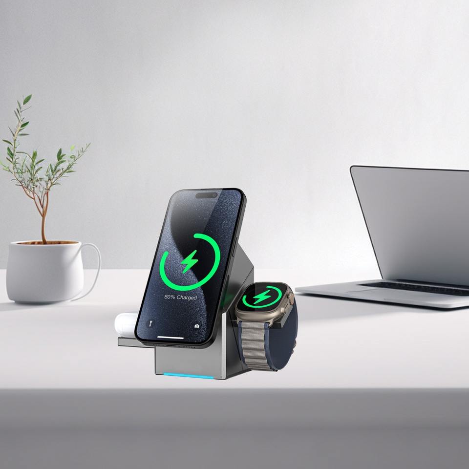 Station de recharge sans fil 3 en 1, Adaptateur universel, Chargeur sans fil, Fast charger