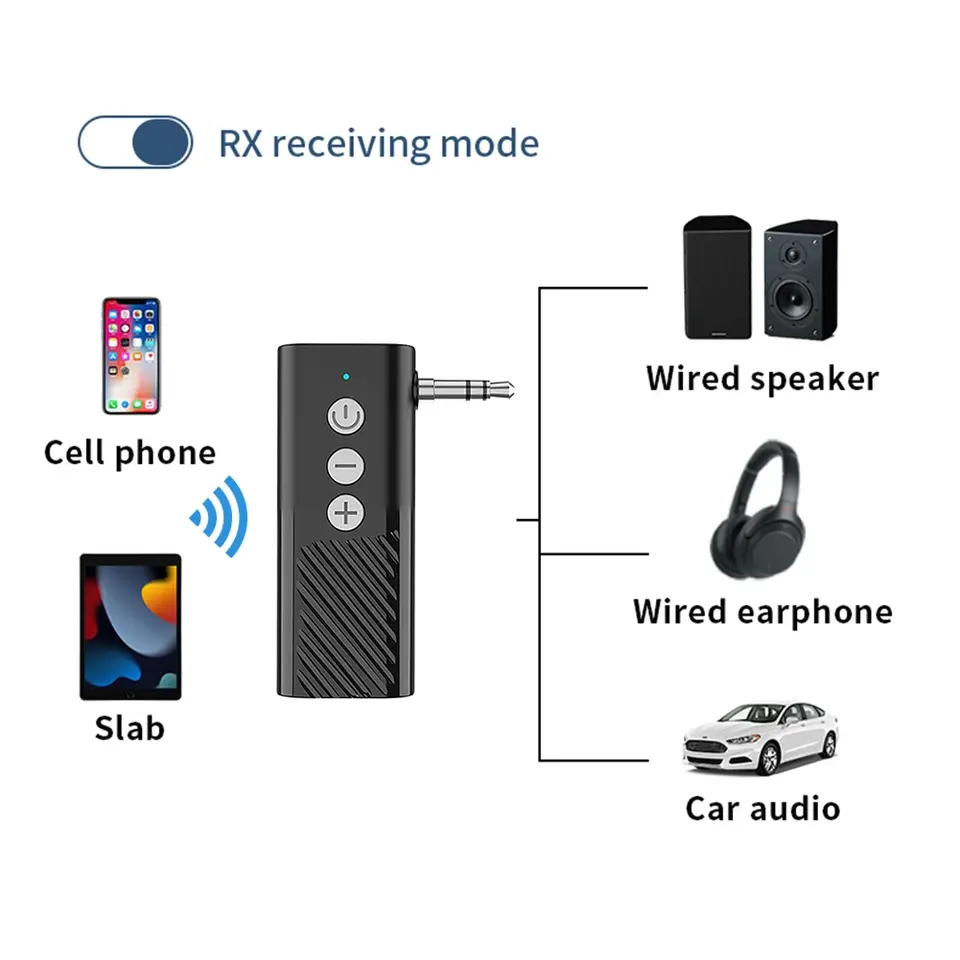 Adaptateur émetteur et récepteur Bluetooth 5.3 3-en-1 avec prise AUX 3.5mm Récepteur audio de voiture supportant la lecture de la carte TF B
