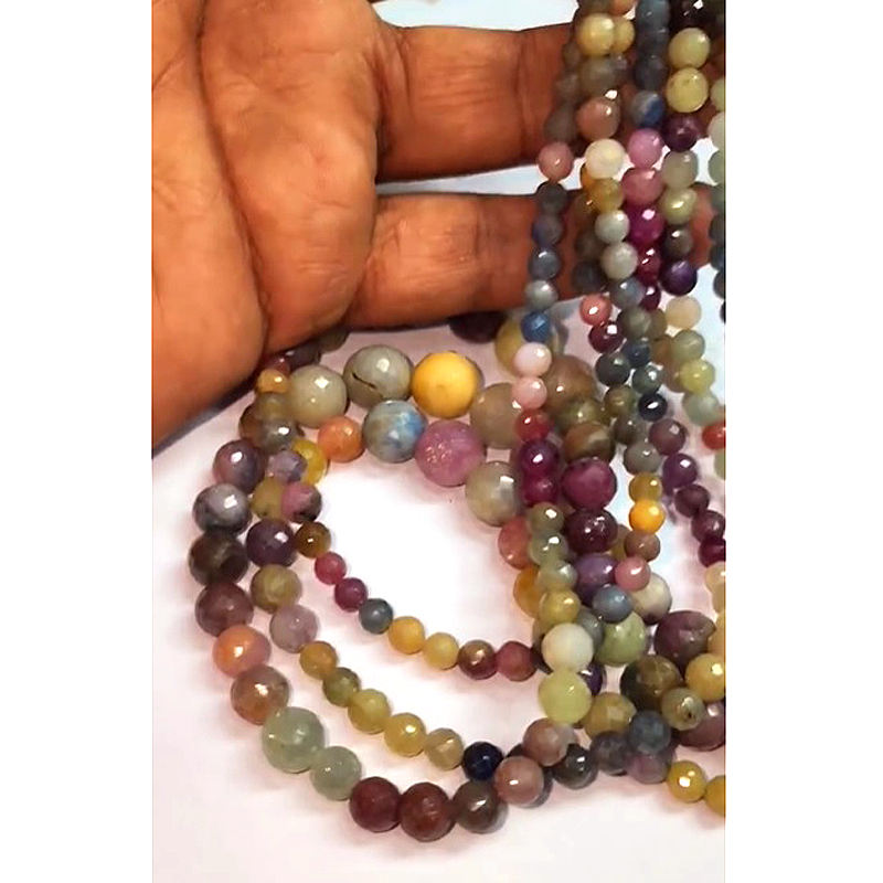 3 Brins Naturel Multi Saphir 5-11mm Perles Rondes À Facettes 750 Cts 20 Pouces En Gros Usine Prix Saphir Perles Lâches US $125