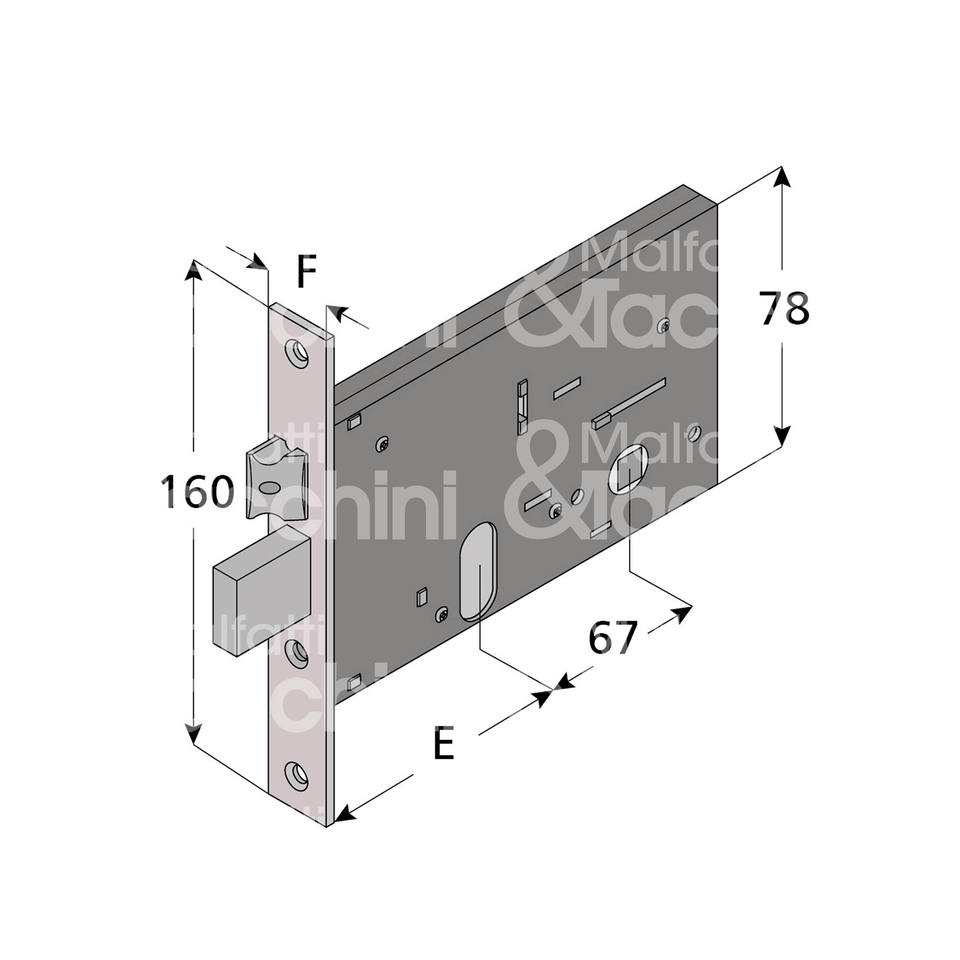 Serrure à bande à 3 tours avec loquet réglable, cylindre ovale non inclus