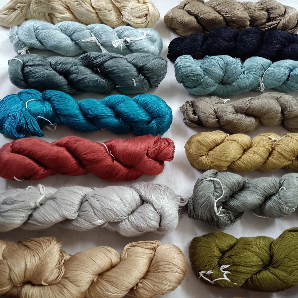Fils de soie de mûrier filés de 30/2 NM teints sur mesure dans un assortiment de tailles adaptés aux artistes du textile pour le tissage et la filature