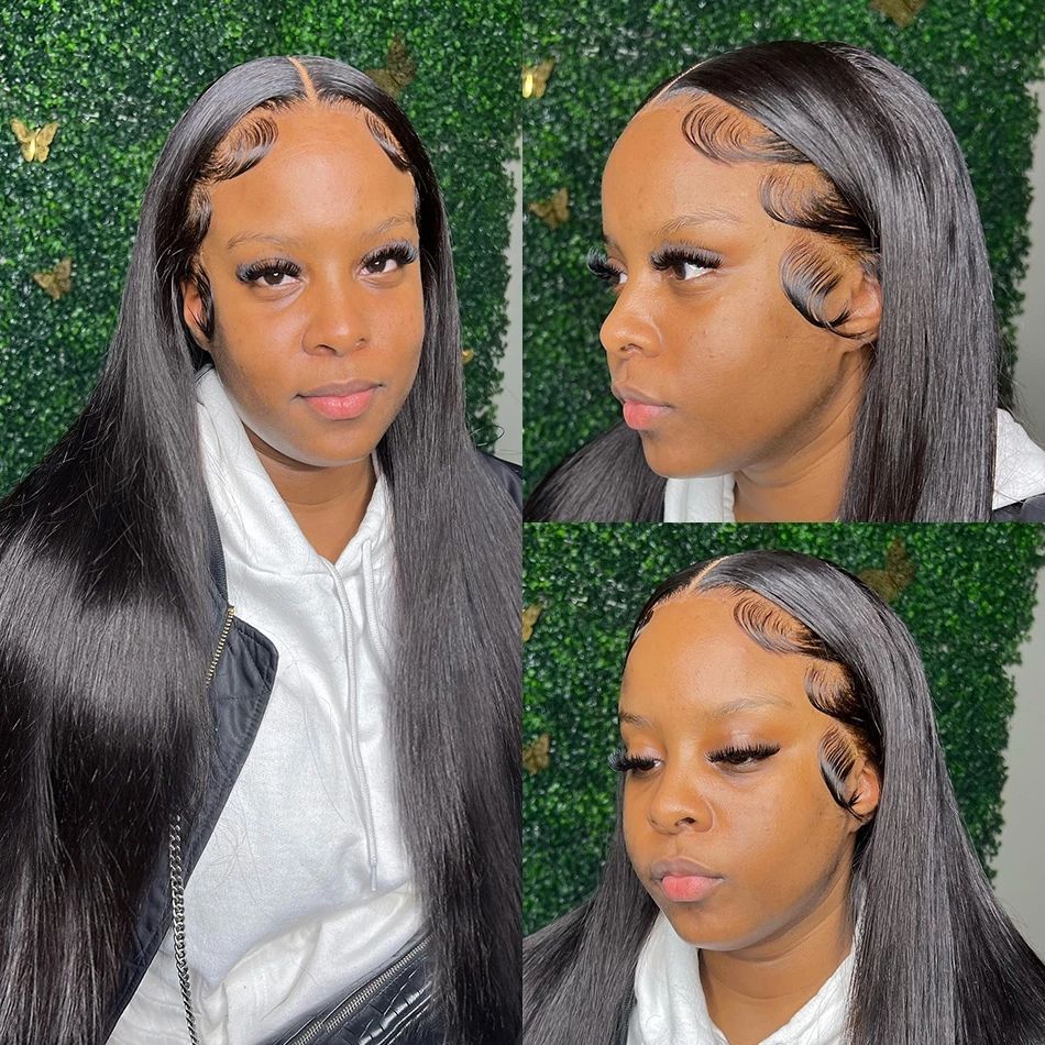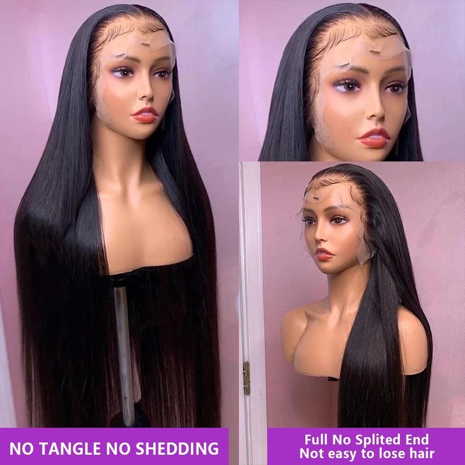 Perruque Lace Front Wig brésilienne naturelle, cheveux lisses, 13x6 HD, densité 180, 30 34 pouces, pre-plucked, pour femmes