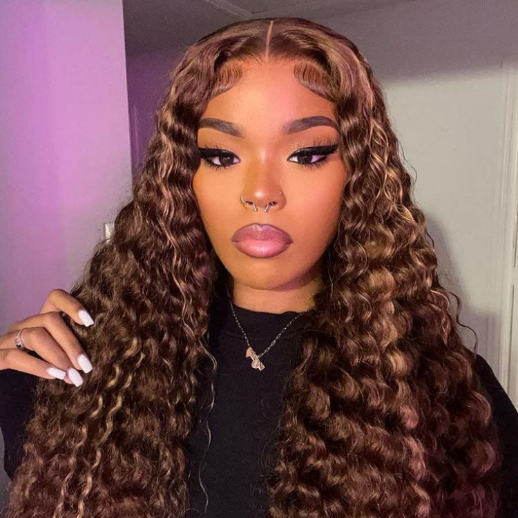 Perruque frontale en dentelle HD de 30 à 40 pouces, longue, à ondulations profondes, avec mèches piano, cheveux humains vierges indiens, 13x4, sans colle, pré-épilée, avec baby hair