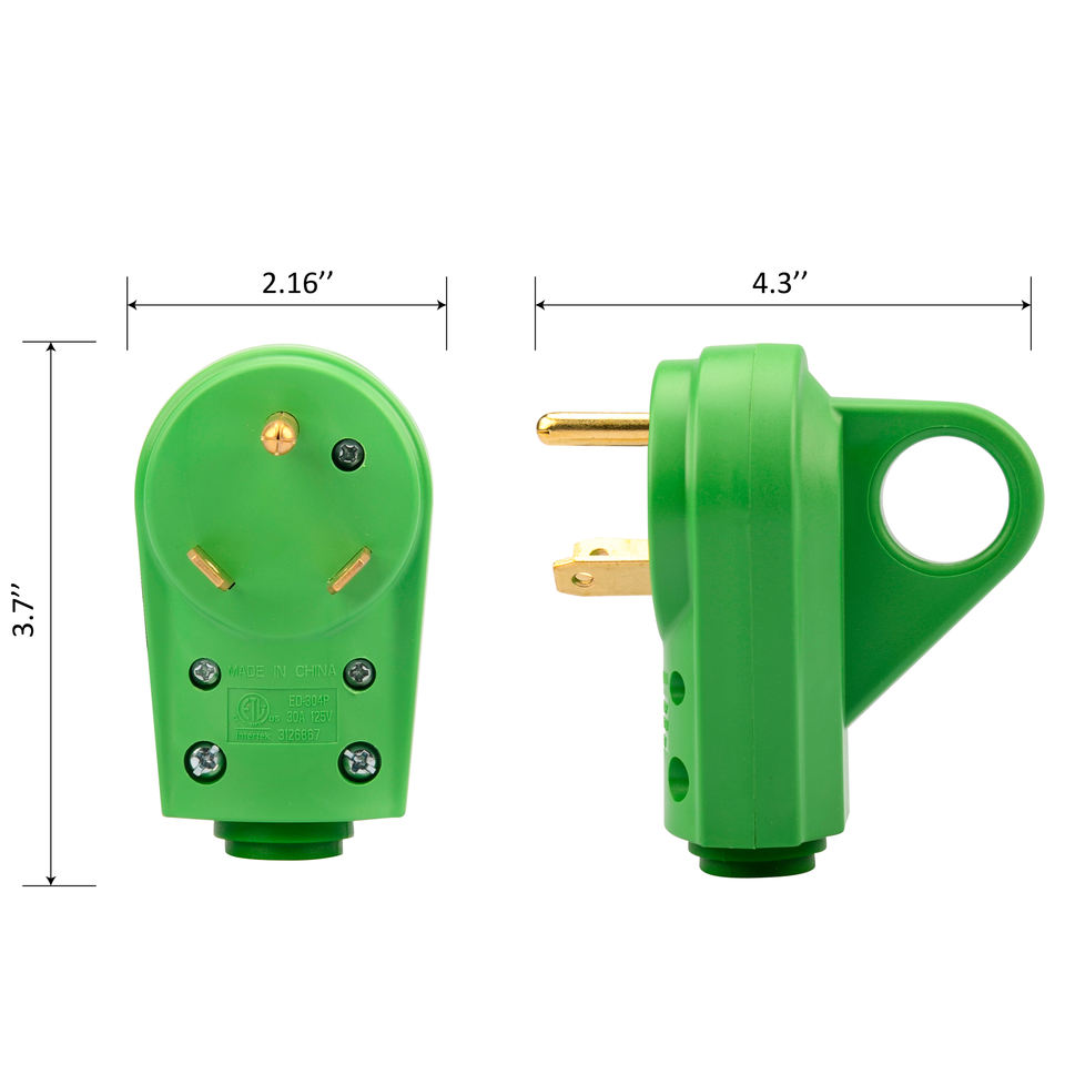Prise de remplacement mâle 30 ampères pour RV NEMA TT-30P 125 volts poignée de déconnexion 30a RV extrémité de cordon ETL listé vert