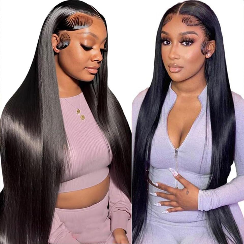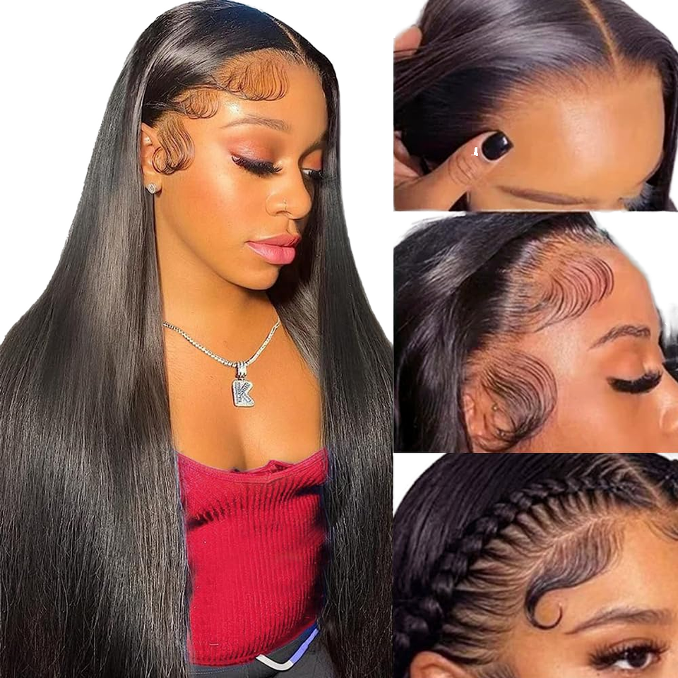 Perruque frontale en dentelle HD transparente 13x4 de 30 pouces, cheveux vierges naturels noirs lisses, 100% cheveux humains brésiliens bruts pour femmes