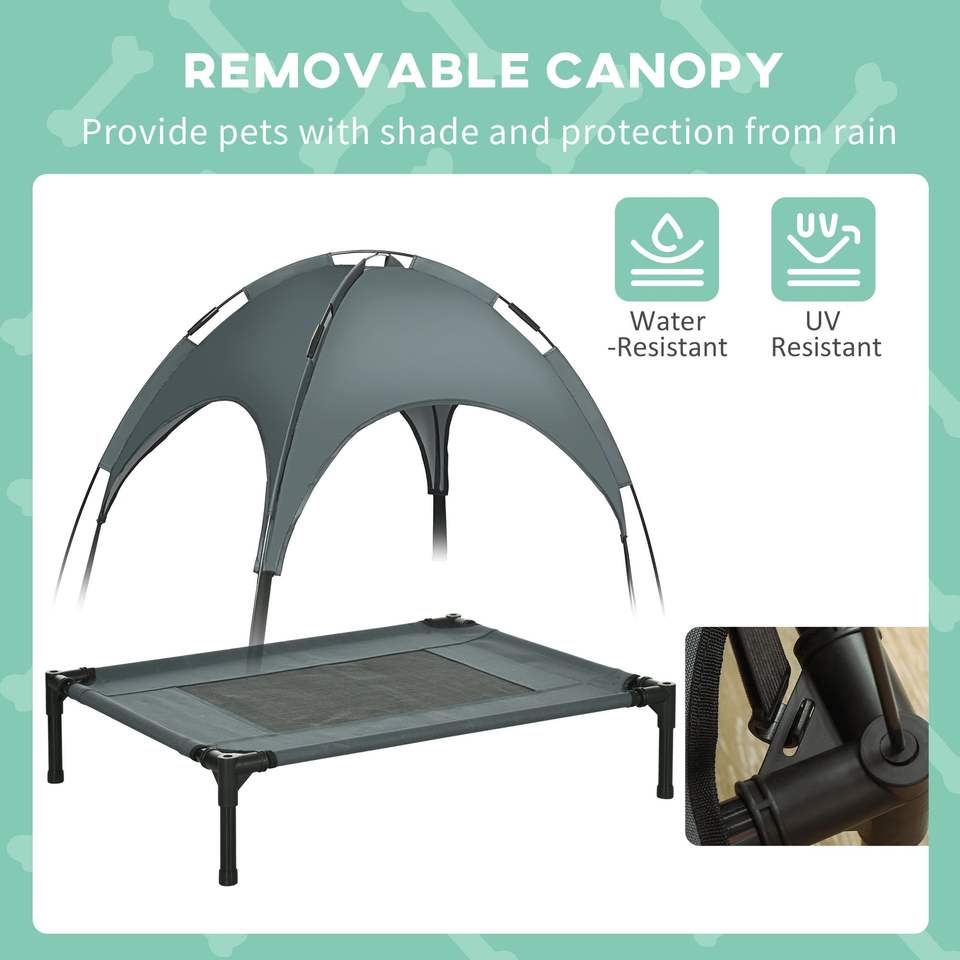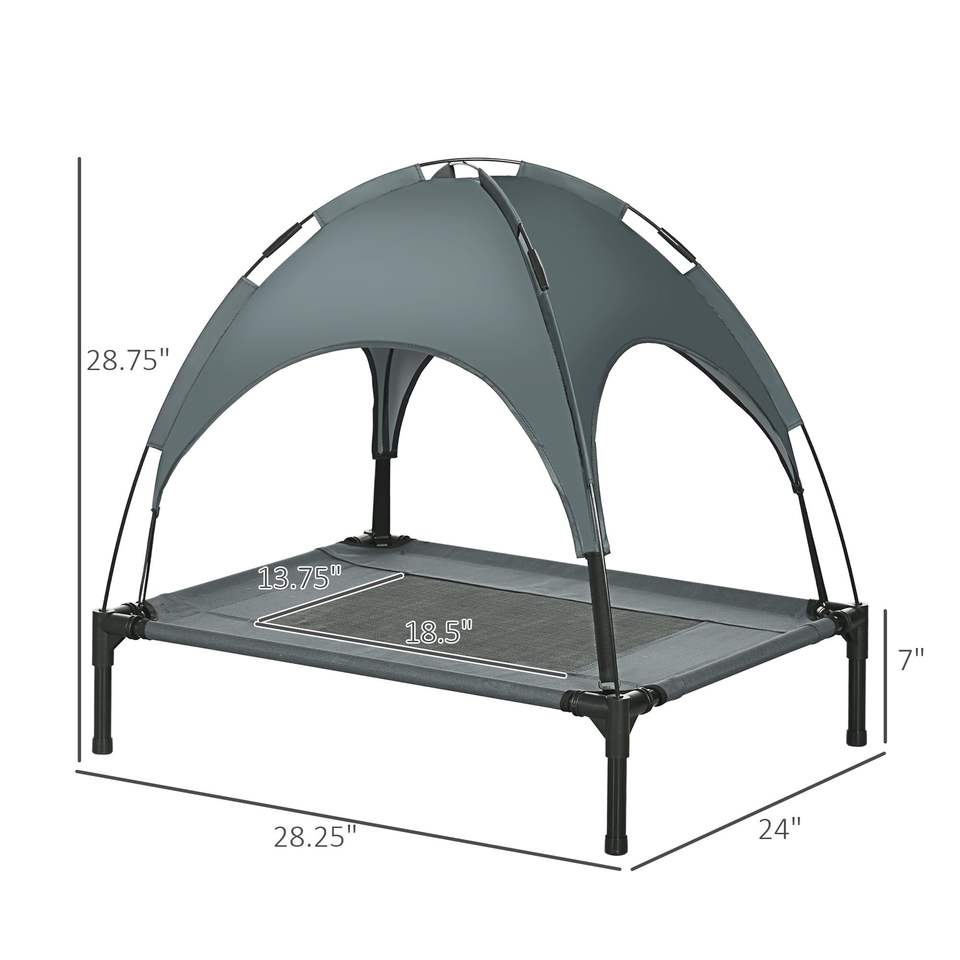 Lit pour animaux de compagnie gris de 30 pouces pour l'extérieur, lit surélevé pour chien avec auvent amovible protégé contre les UV pour le camping, abri solaire