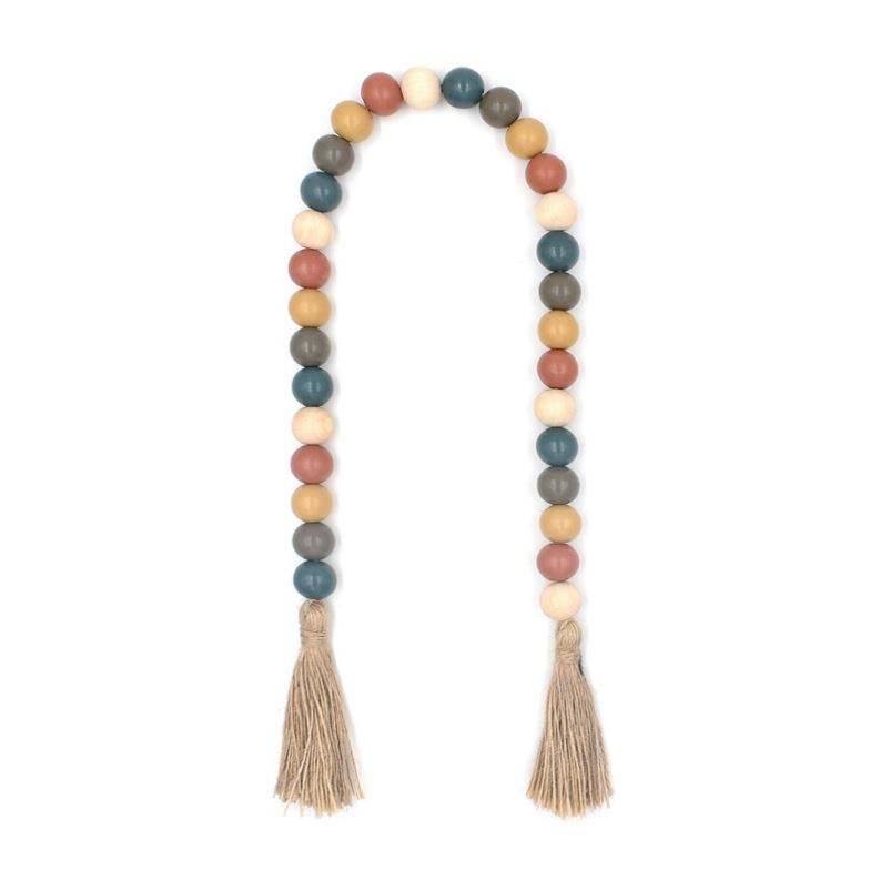Guirlande de perles en bois de style rétro de 30 pouces avec glands pour décoration d'intérieur Boho Liquidation Sale