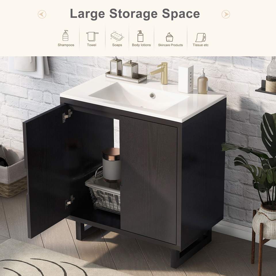 30-Inch Solid Wood Frame Bathroom Vanity Set with Sink & Cabinet Bathroom Storage Combo (Same As SV000008AAB 1)