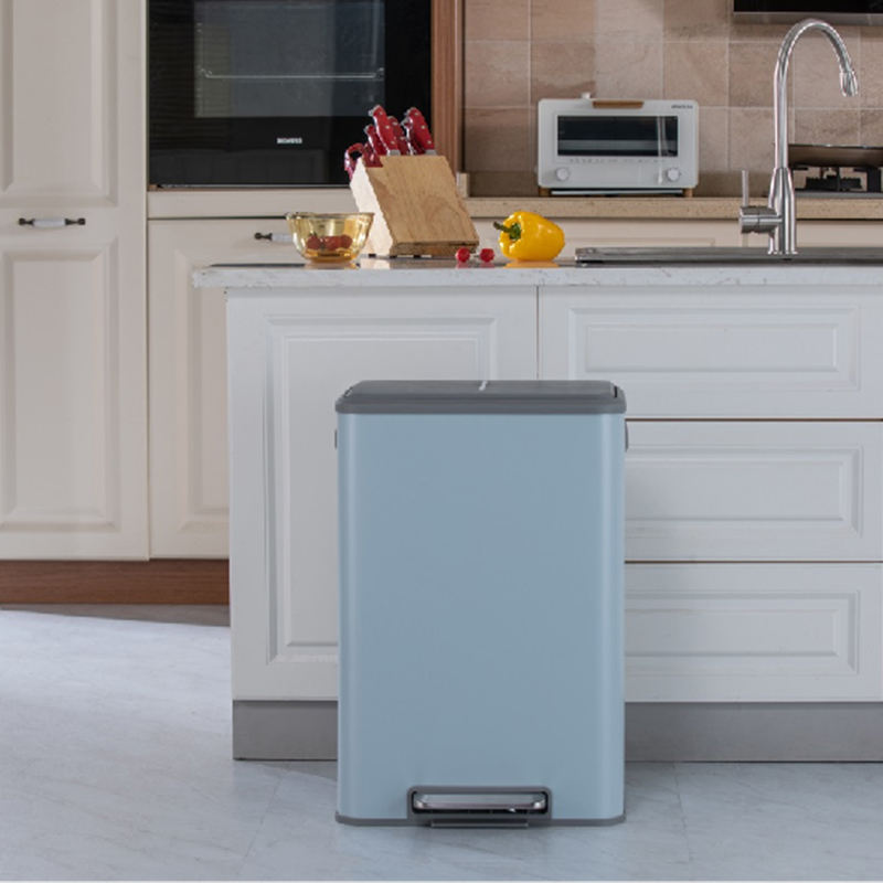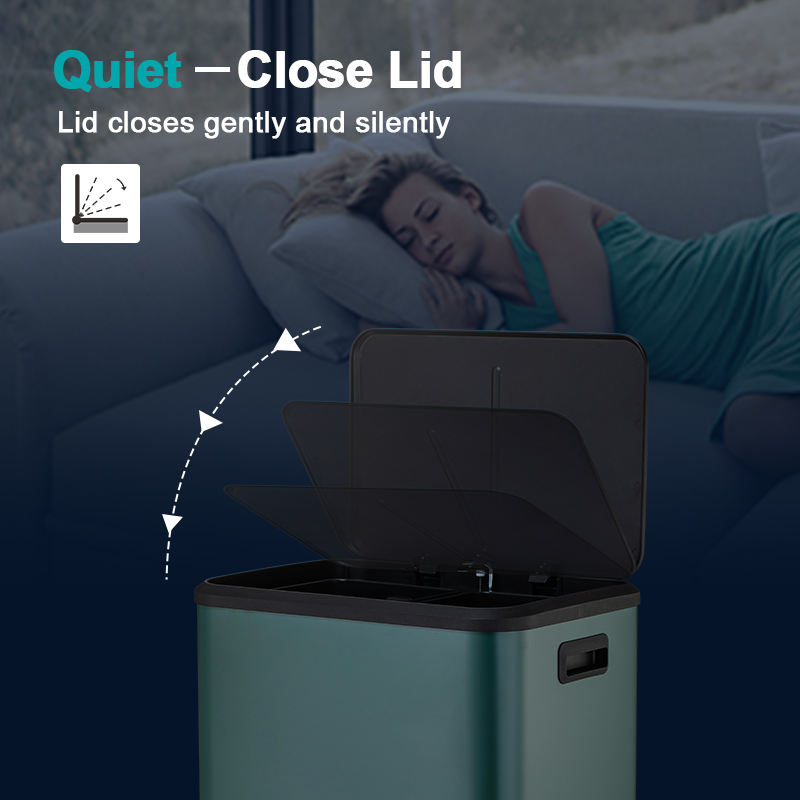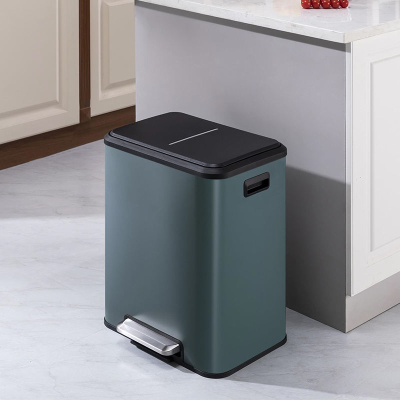 Poubelle de tri en acier inoxydable, 2 compartiments, pédale de cuisine intérieure, poubelle de recyclage, 30 litres