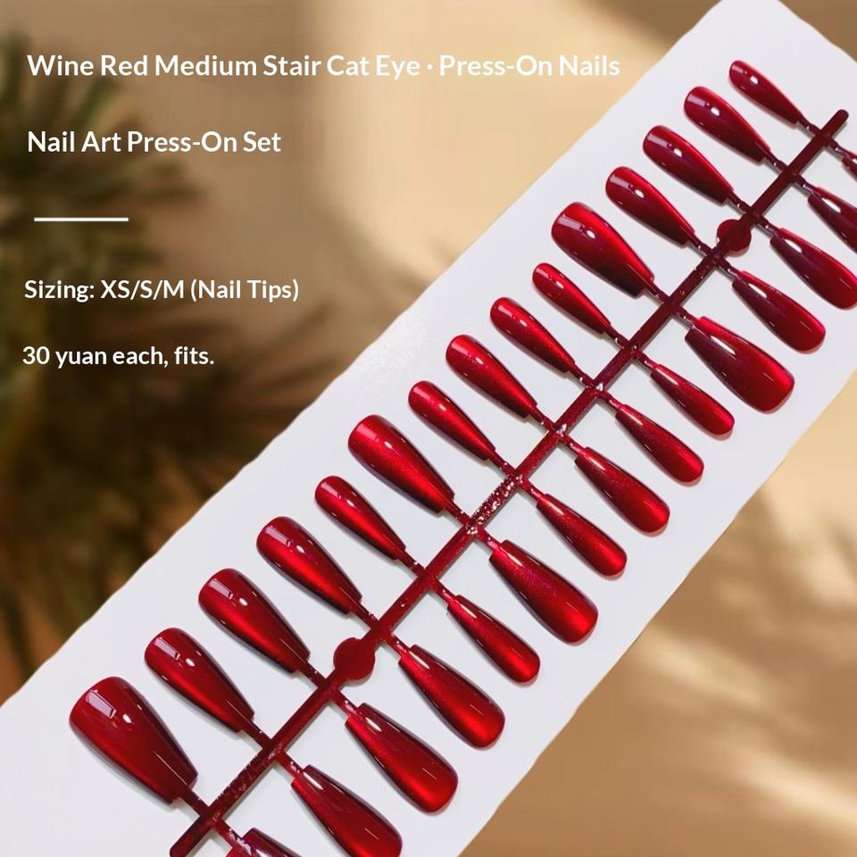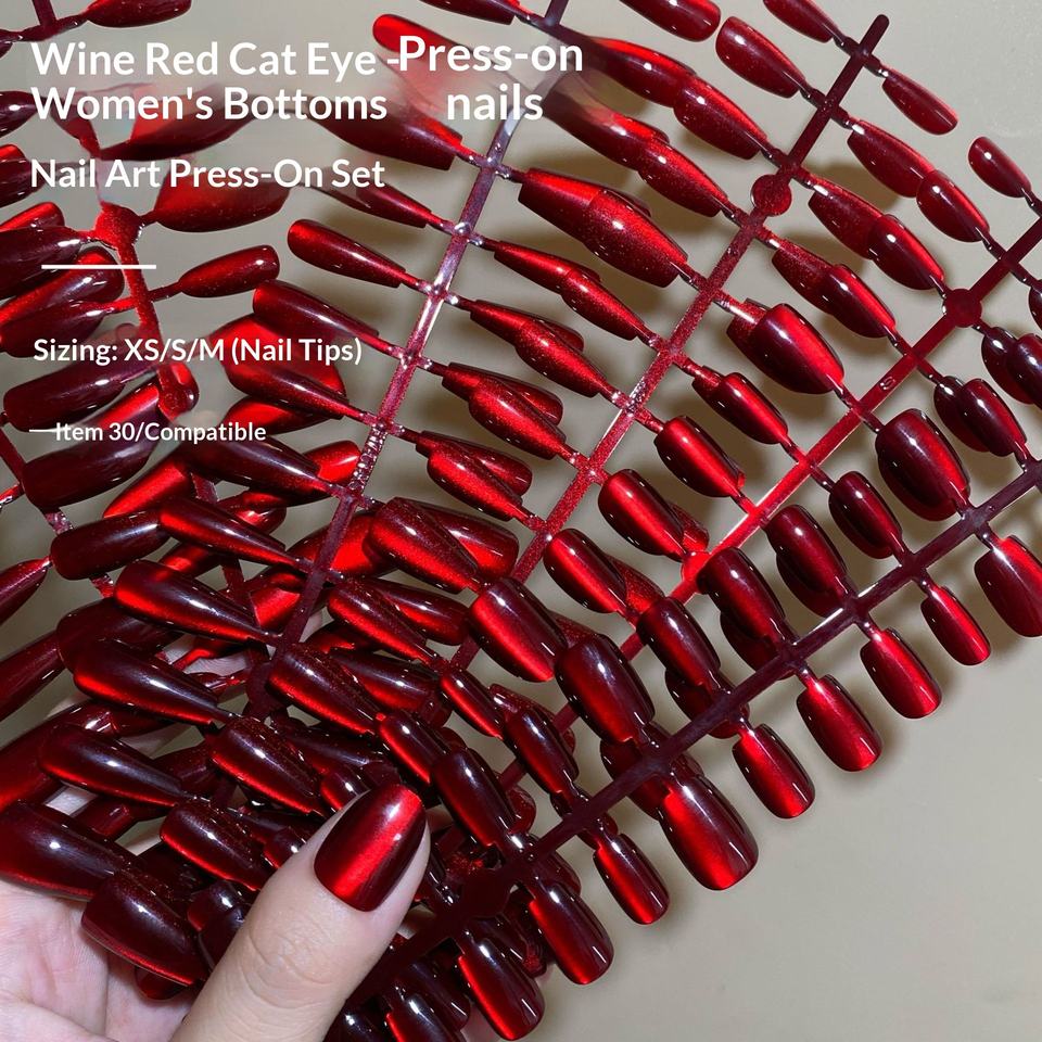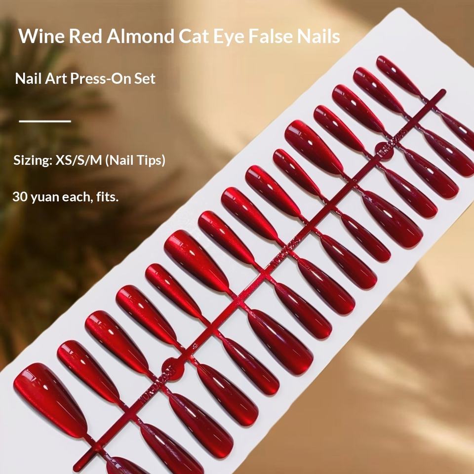 30 faux ongles à presser œil de chat rouge bordeaux couleur unie pour doigts, sexy, vente en gros, pointures XS/S/M, capsules d'ongles artificiels