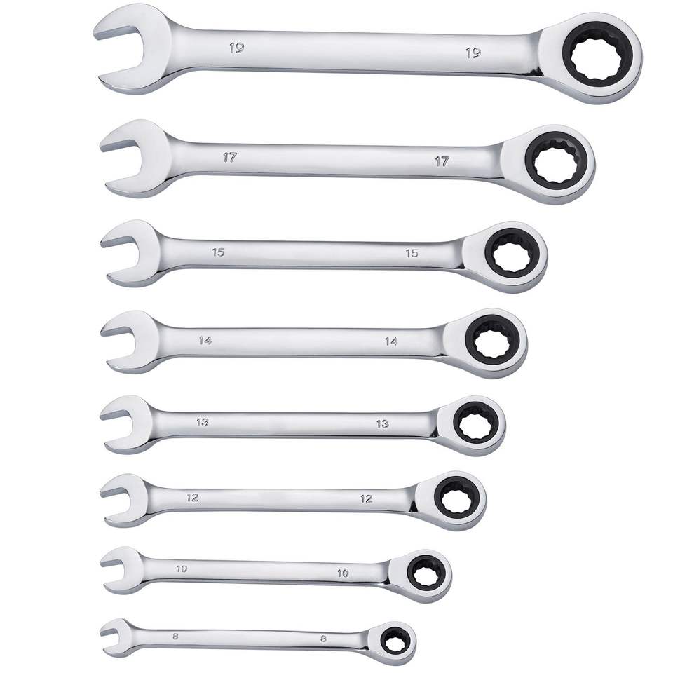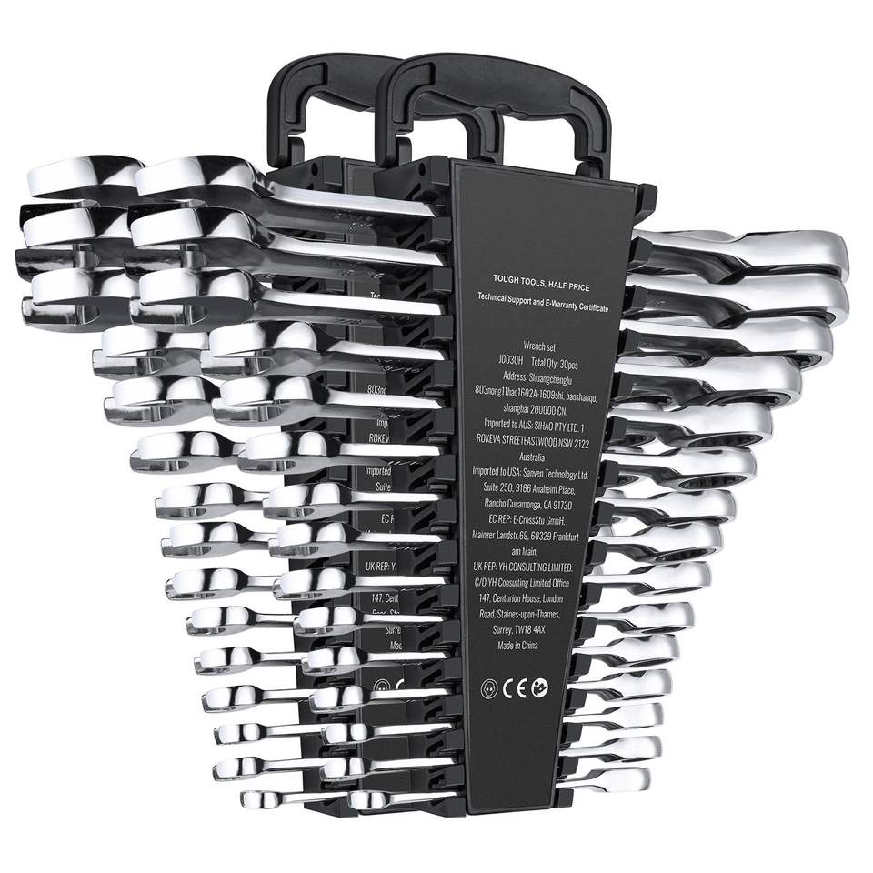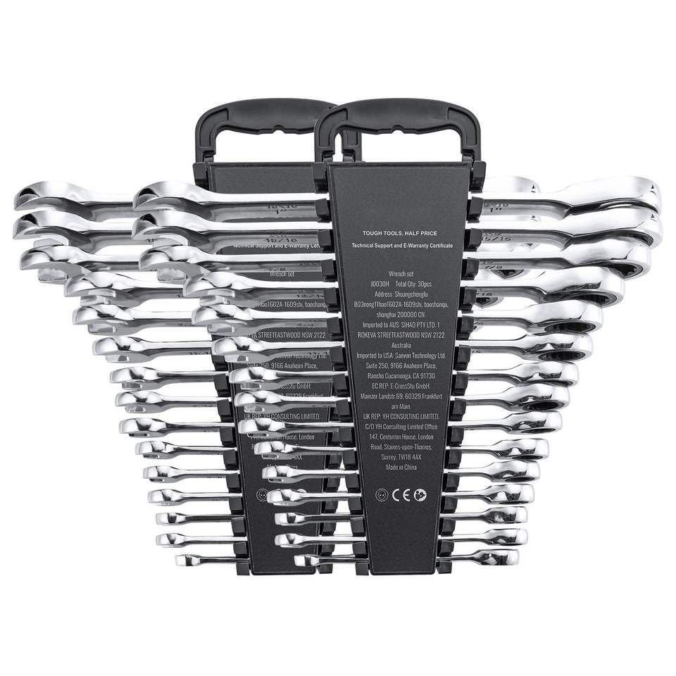 Jeu de clés à cliquet combinées de 30 pièces, SAE 1/4''-1'', métriques 8 mm, en acier Cr-V, avec support d'organisation