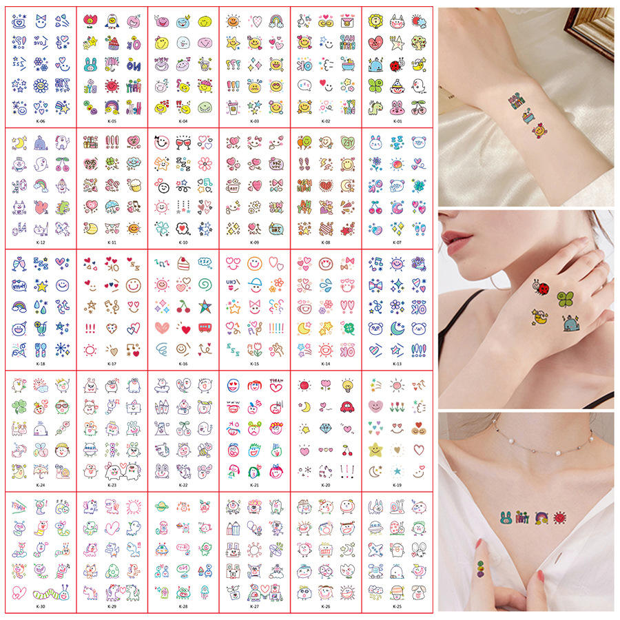 30 Feuilles Fleur Tatouages Temporaires Faux Petit Tatouage Temporaire Imperméable Corps Art Autocollant pour Femmes Filles Enfants Main Cou Poignet B