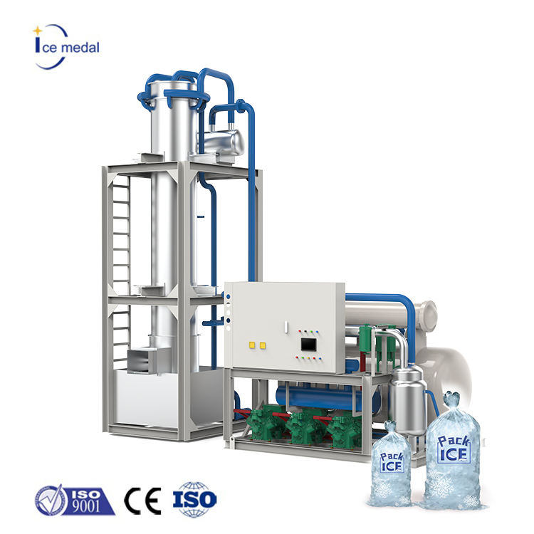 Machine automatique de fabrication de tubes de glace à cylindre solide creux de 30 tonnes engrenage de moteur de compresseur Siemens en acier inoxydable à haute productivité