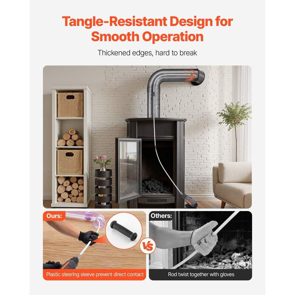 Kit de nettoyage de cheminée extensible de 30 pieds avec lunettes de protection et brosses de rechange, accessoires pour le nettoyage des cheminées