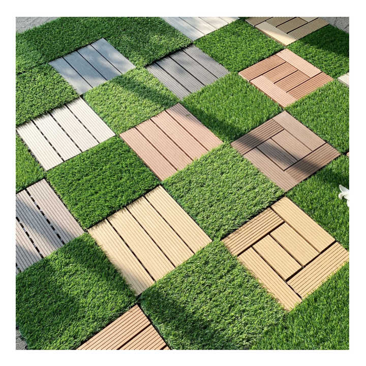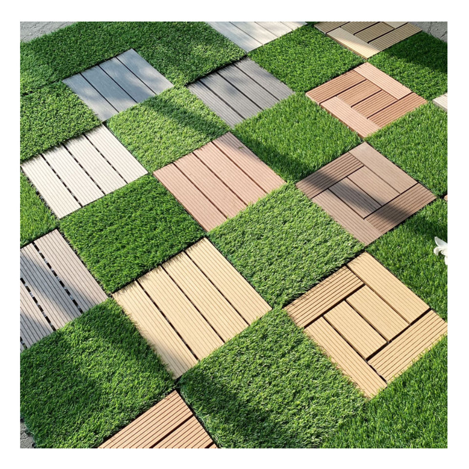 Gazon synthétique moderne durable imperméable à l'eau brossé à emboîtement 300*300mm Tapis de gazon pelouse