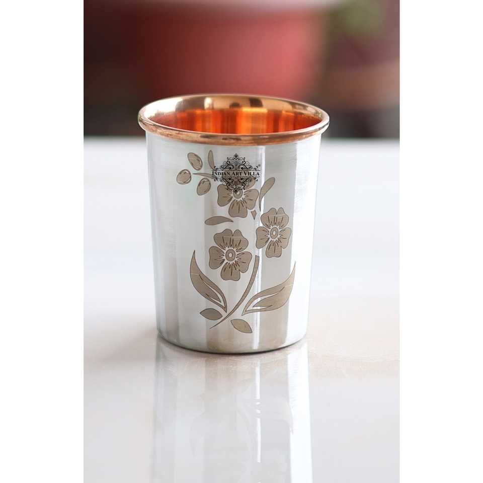 Verre en acier pur de 300 ml avec motif floral gravé, style élégant