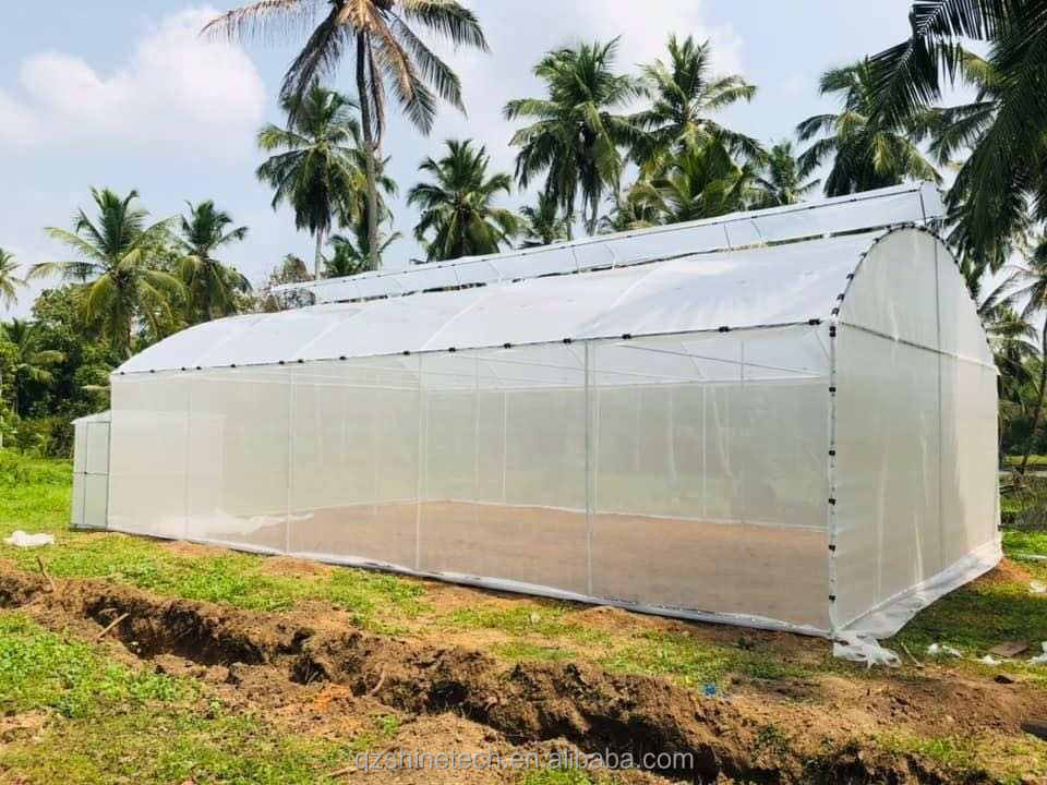 Serre de 300 mètres carrés prête à être expédiée, serre tunnel à simple portée à faible coût, serre pour légumes, serre à vendre