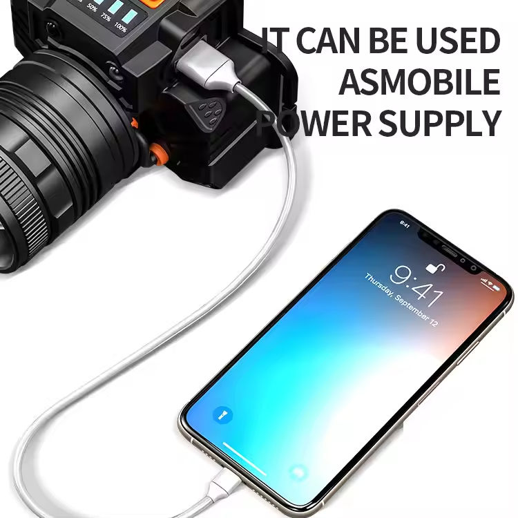 Lampe frontale LED rechargeable 3000 Lumens, 3 modes, zoom, capteur caméra, pour camping et mineurs, IP54, lumière du jour 6000K, en aluminium