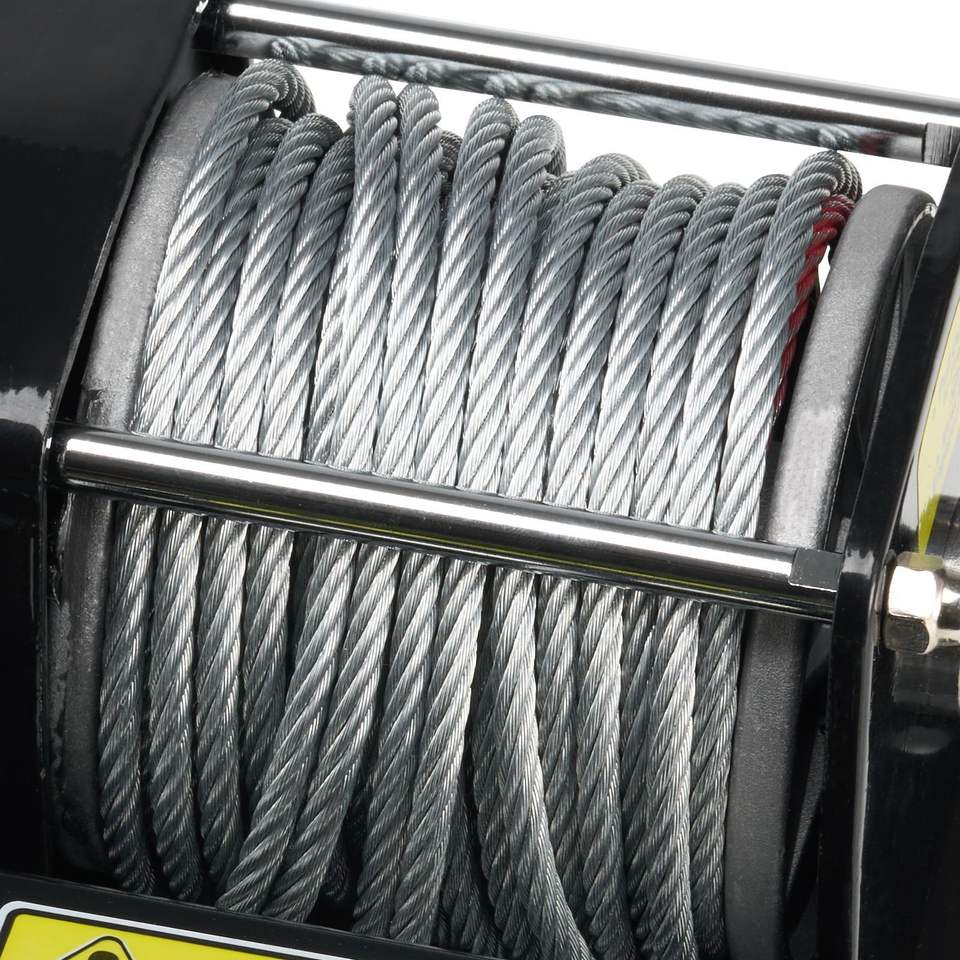 Treuil électrique 12V DC pour VTT/UTV avec capacité de traction de 3000 lb, câble en acier à 7 brins de 3/16 x 39 pieds et enrouleur de câble à rouleaux