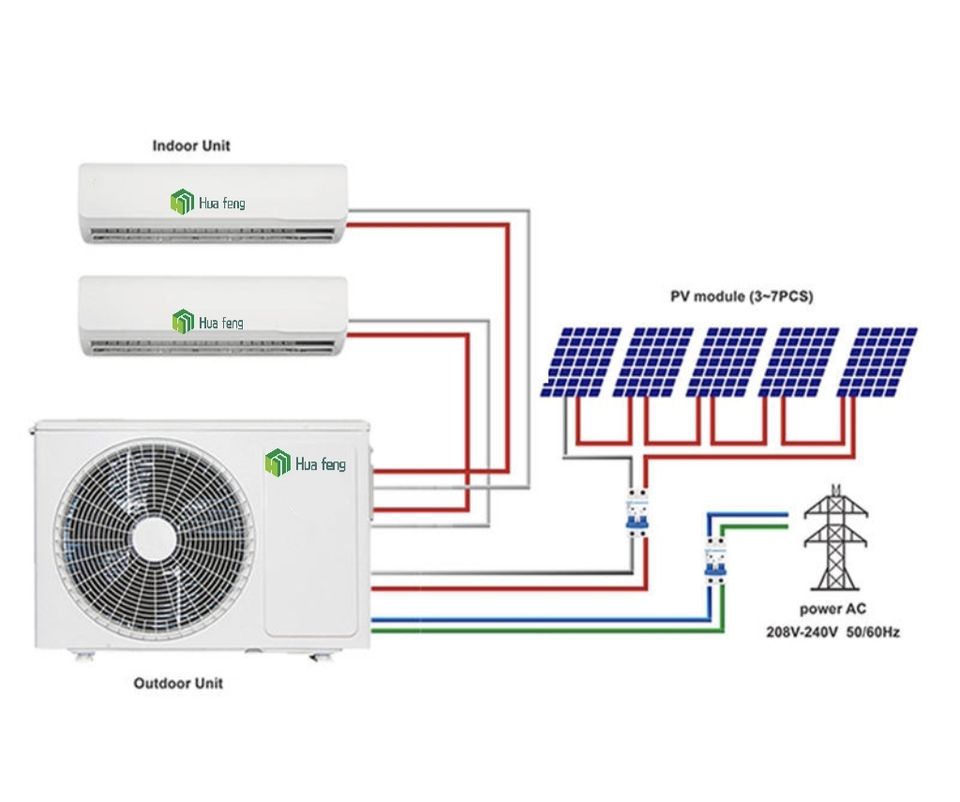 Système multi-zones 30000 Btu, climatiseurs solaires universels, pompe à chaleur, climatiseur solaire multi-zones split à inverter