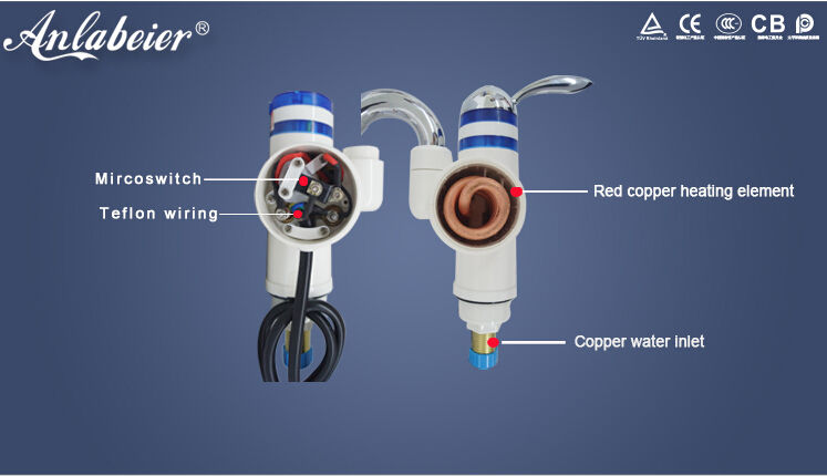 Chauffe-eau électrique instantané en nickel 3000W 5S Robinet de robinetterie 220V Montage à trou unique avec poignée unique Haute efficacité Montage sur plan de travail
