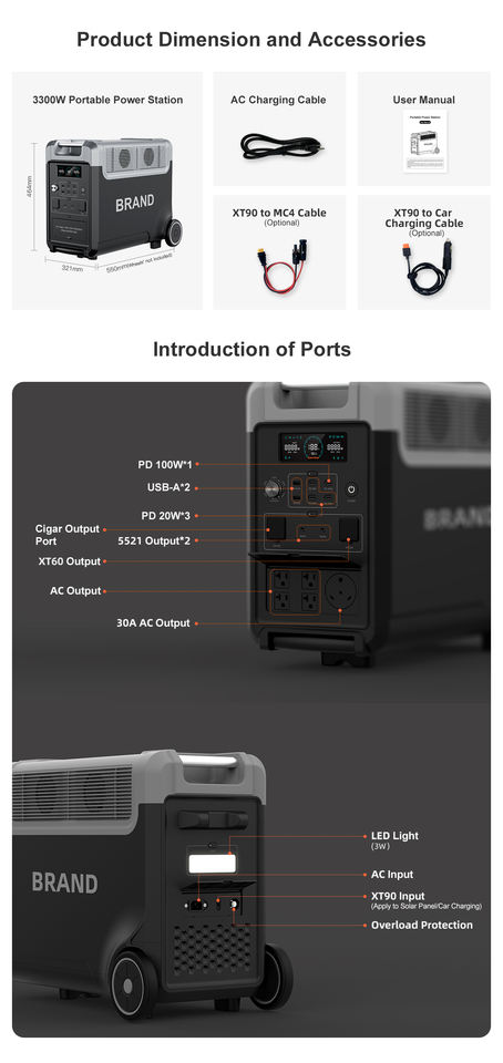 Nom du produit:Centrale portative solaire LiFePO4 3600W de batterie supplémentaire