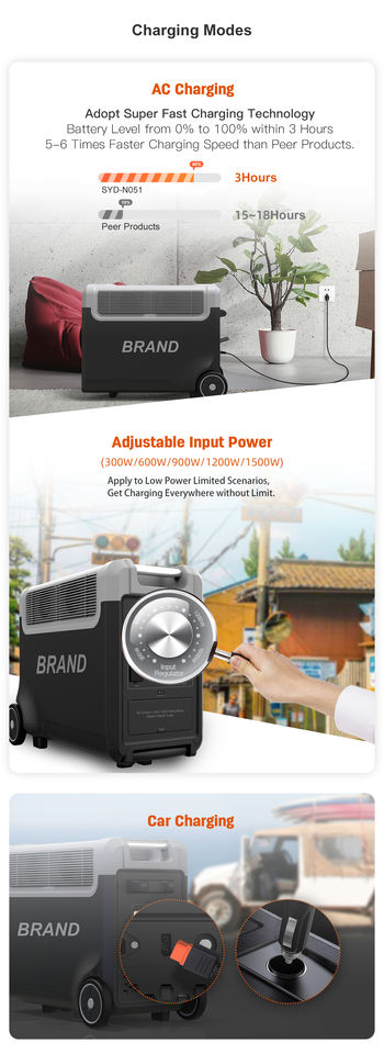 Options de recharge:AC, Charge de voiture, Panneau solaire 2000W Max