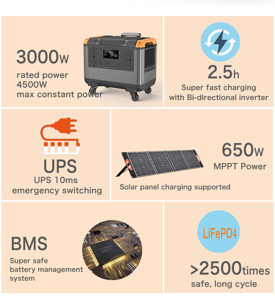 Station d'alimentation portable pour camping-car 3000W, batterie 2400Wh avec double prise AC, démarreur de voiture pour les voyages en voiture et les aventures en plein air