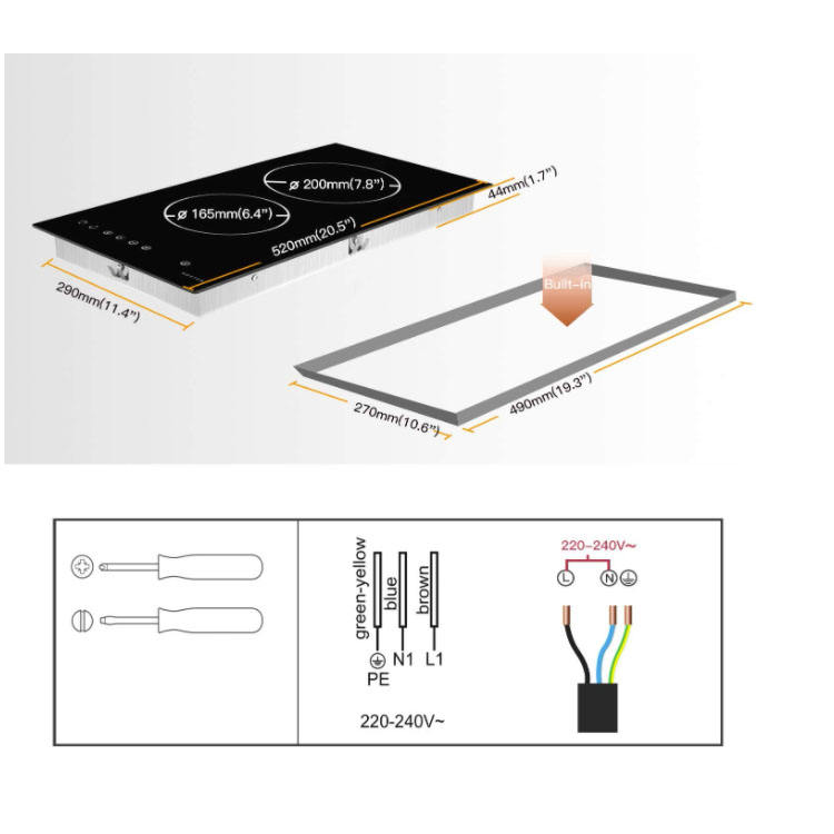 Commandes tactiles 3000W intégrées dans la cuisinière en céramique Domino de 30cm à 2 zones