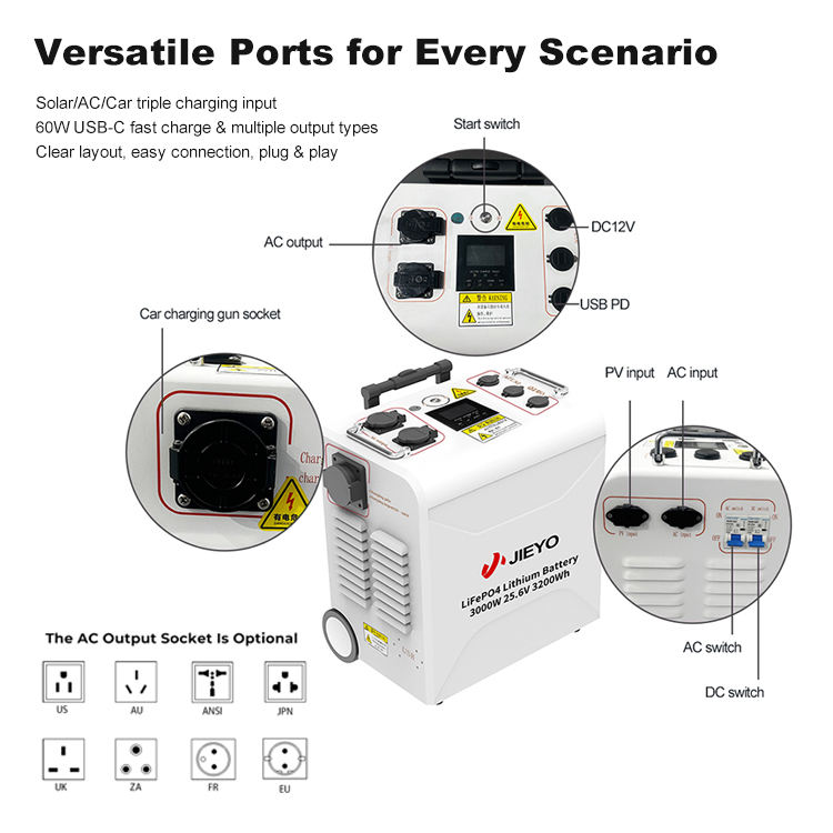 Centrale Électrique Portable 3000 W Générateur Solaire 5000 W Contrôleur MPPT Onde Sinusoïdale Pure Nouvelle Énergie Source d'Alimentation de Secours pour Voiture sur Chariot