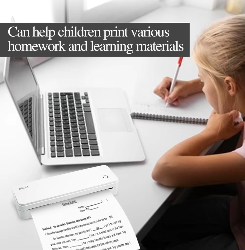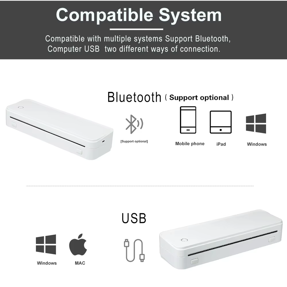 Imprimante thermique portable 300DPI Mini A4 Imprimante sans fil BT Applicable aux bureaux et aux étudiants Imprimante thermique portable