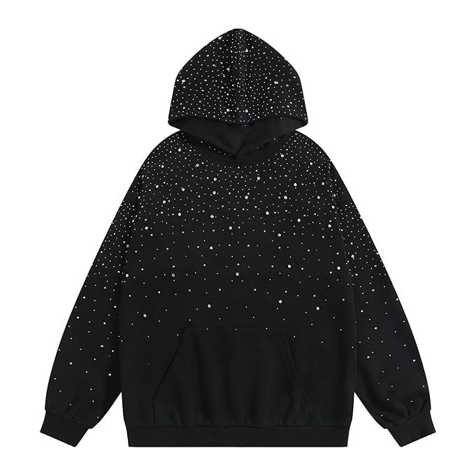 Sweat à capuche épais 300G pour homme en mélange coton-polyester avec strass, en molleton bouclette épais, fermeture éclair intégrale, style streetwear