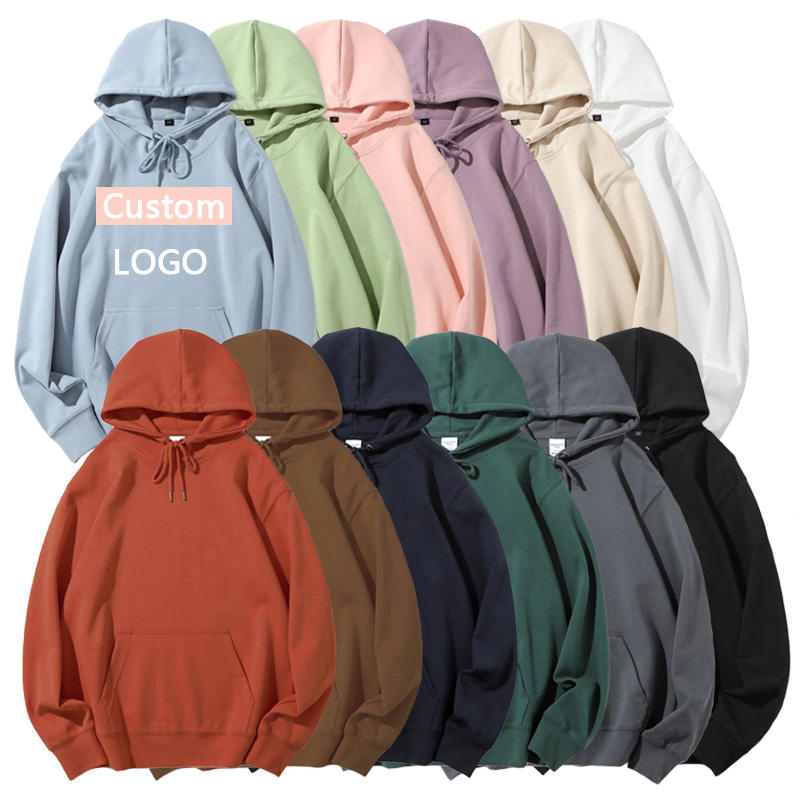 300G Pure Color Pull à capuche à col rond 80% coton 20% Polyester pour hommes et femmes