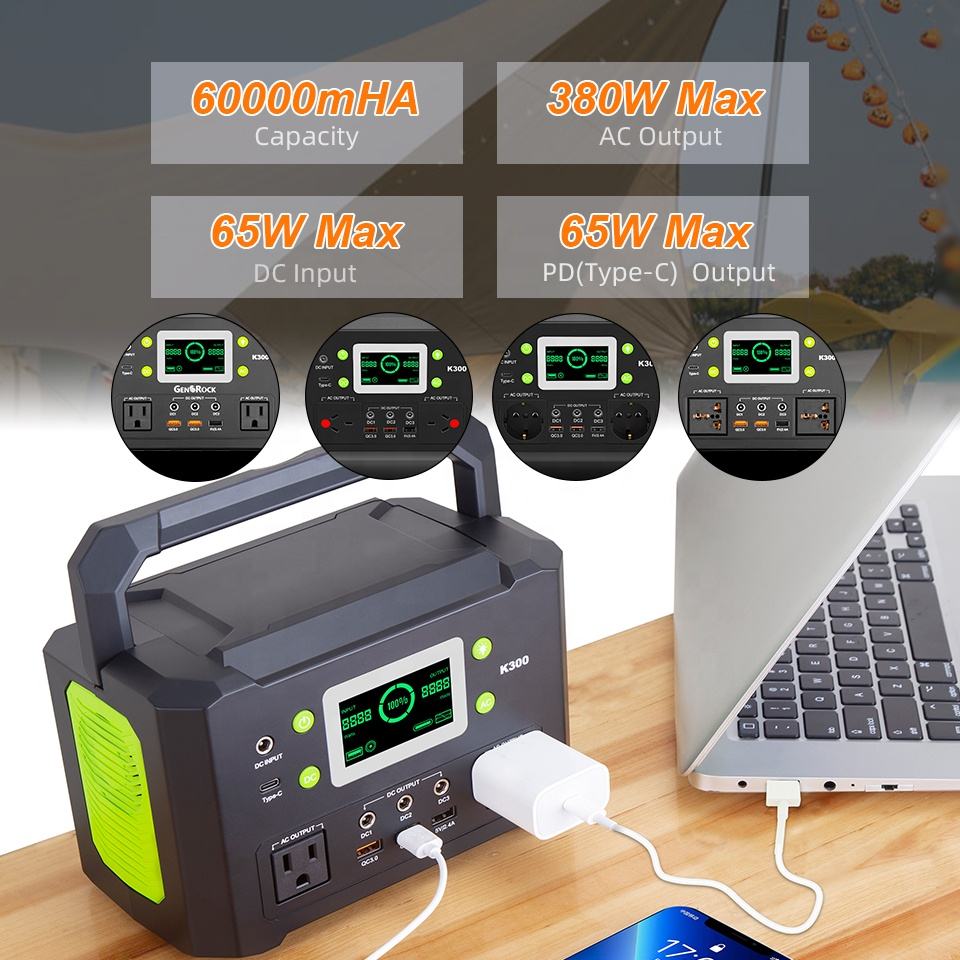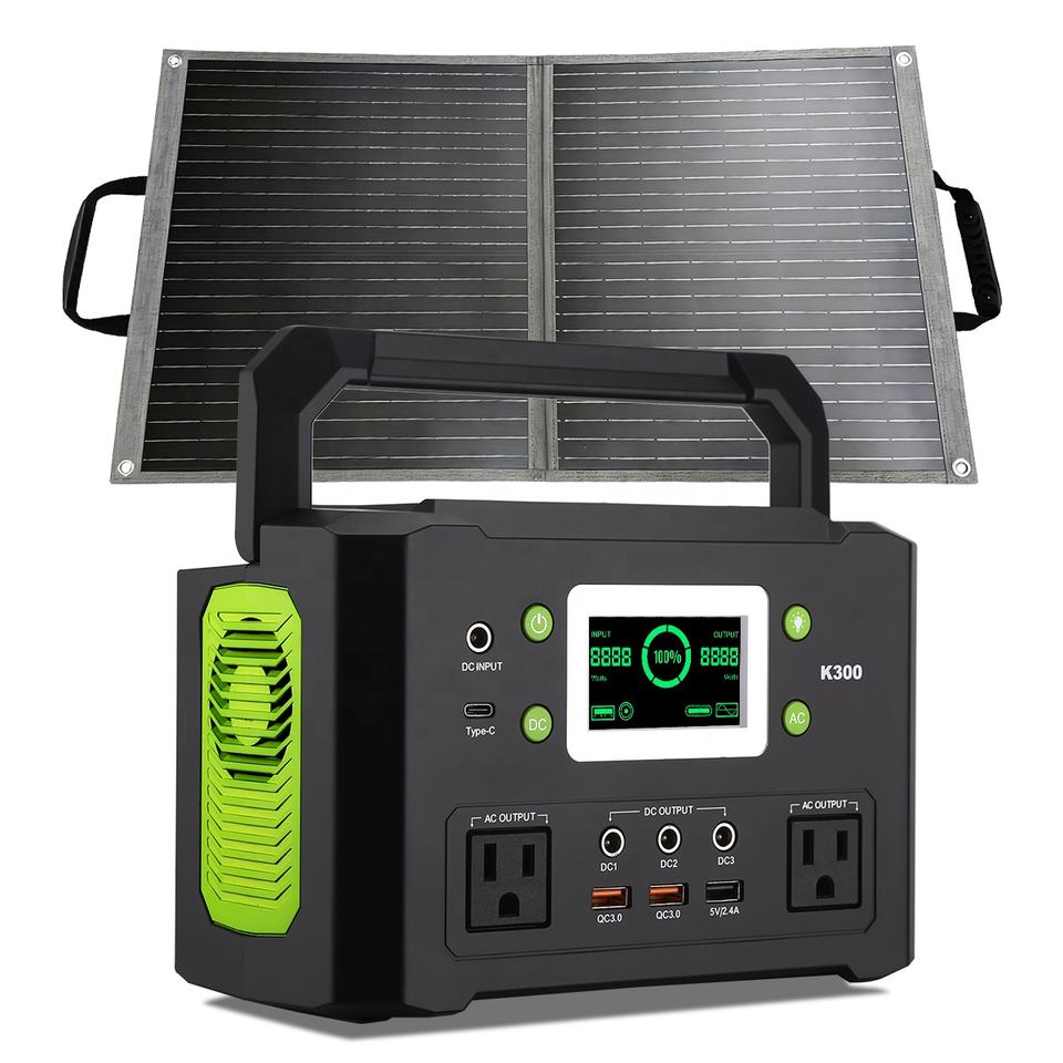 Station d'alimentation portable au lithium-ion 300W avec chargeur de voiture, kit générateur solaire 60W - Panneau solaire pliable pour le camping en plein air