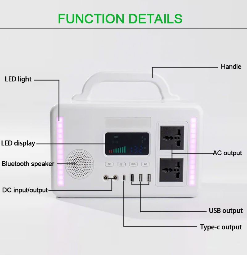 Télécommande, Type C, Lampe de poche, Démarreur de saut, RV Port, Allumeur de cigare, External battery