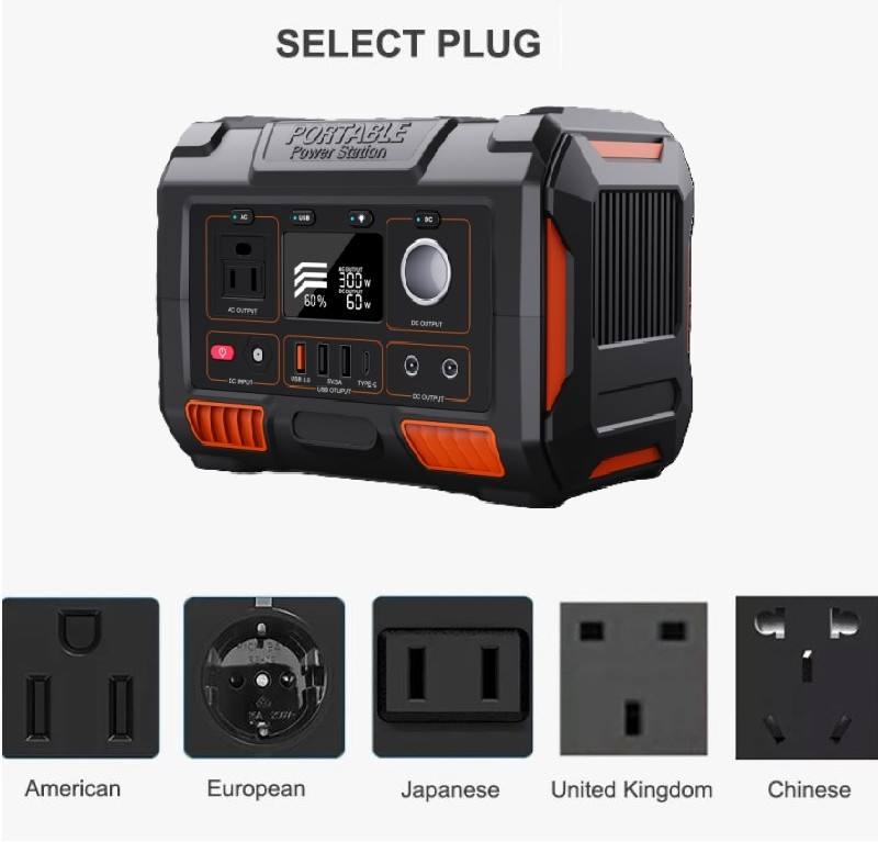 Chargeur solaire portable 300W Batterie externe AC 110V-240V Onduleur 12V DC USB Home Emergency Backup Solar EU UK Plug External Battery