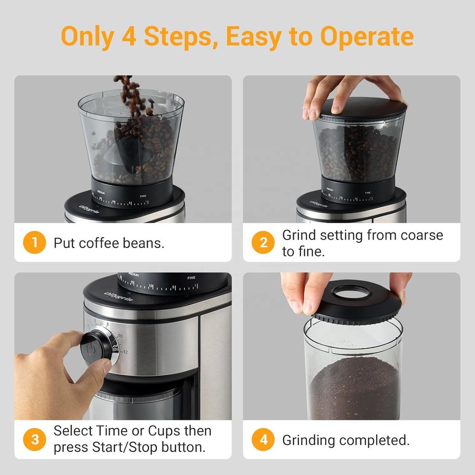 Moulin à café électrique en acier inoxydable conique de 300 g, 30 réglages de mouture réglables, 160 W pour un usage domestique