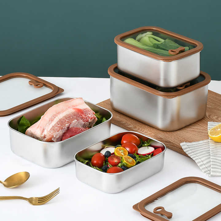 Boîte à lunch en acier inoxydable 304 avec couvercle en verre