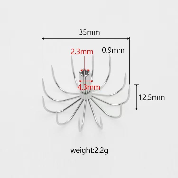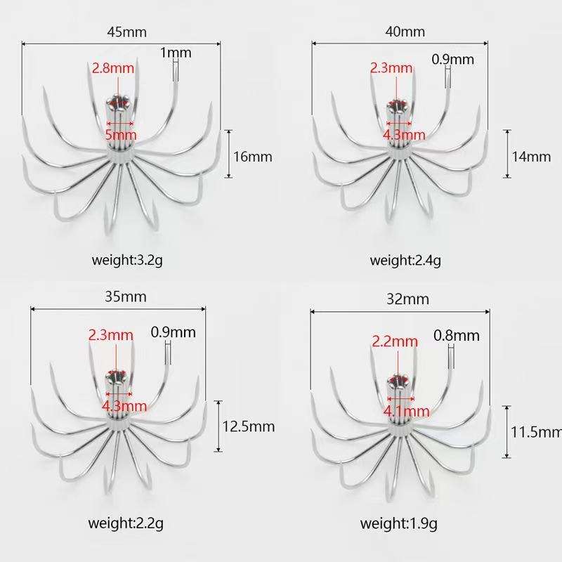 Hameçons de pêche octogonaux à ardillons en acier inoxydable 304 pour calamar, pieuvre, équipement d'ancrage, pêche en lac